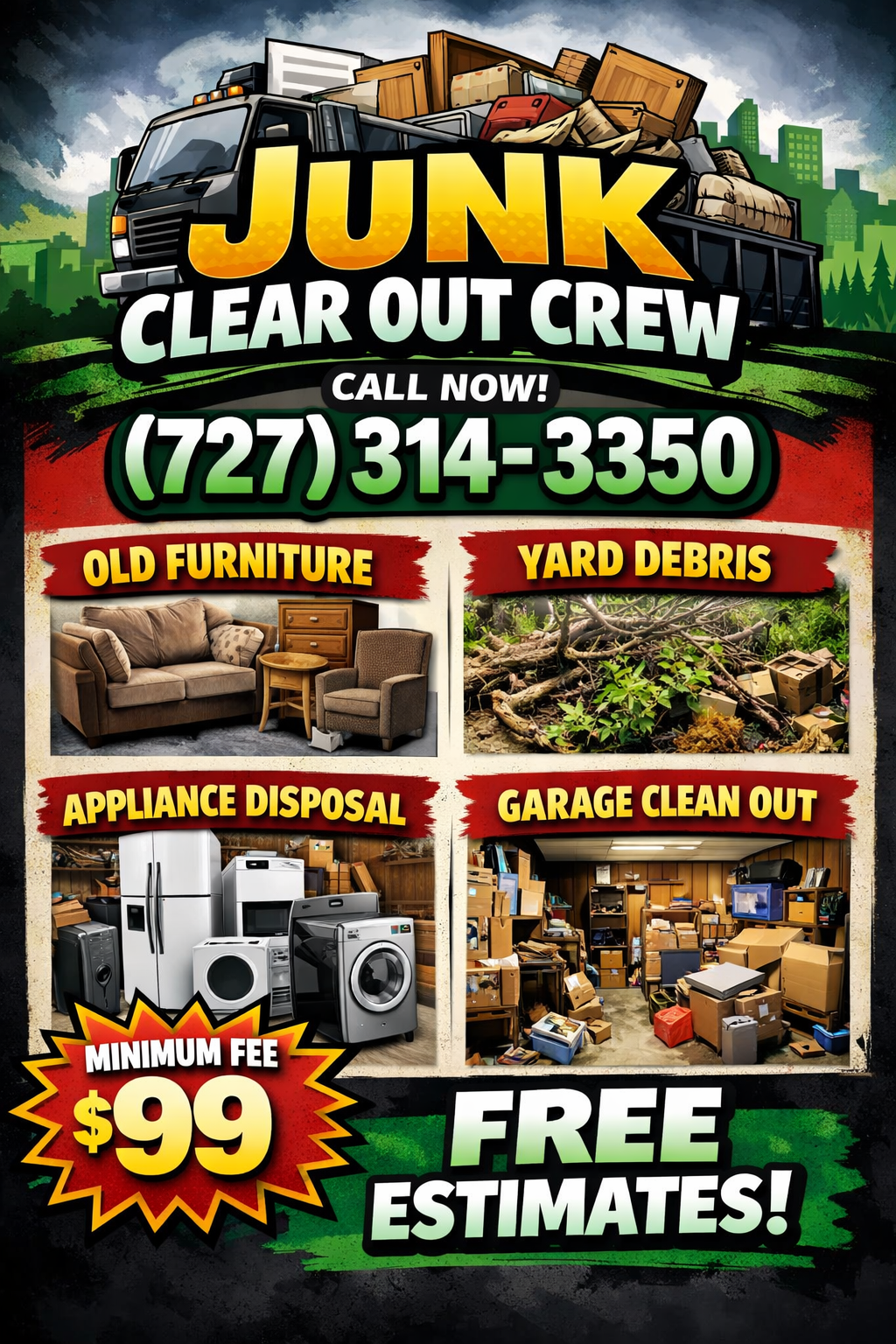 Welcome to Clearout Crew Junk Removal, your trusted partner for efficient and hassle-free junk removal services in Clearwater, Florida. We make clearing your space easy, so you can focus on what matters most. Let us handle the heavy lifting!